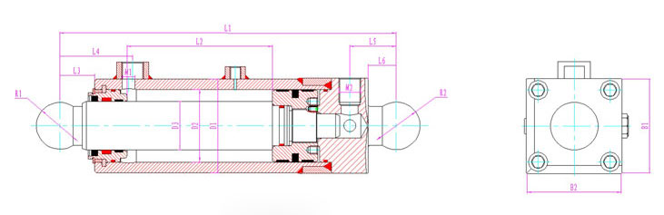 | 產品型號 | 行程 | 安裝距 | 額定壓力 | L1 | L2 | L3 | L4 | L5 | L6 | D1 | D2 | D3 | R1 | R2 | B1 | B2 | M1 | M2 |